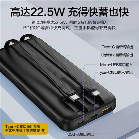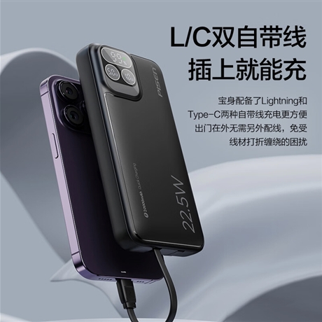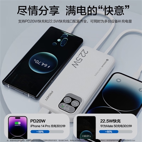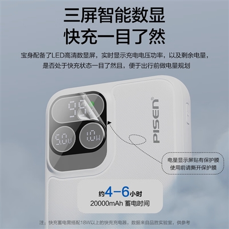 PISEN QUICK 双自带线22.5W智能屏显快充电宝20000(TP-D32/云初白)